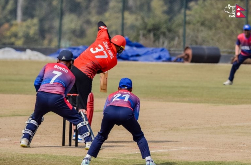 सागरले लिए आक्रामक ब्याटिङ गरिरहेका दलिवालको विकेट, खेलमा फर्किने प्रयासमा नेपाल ‘ए’