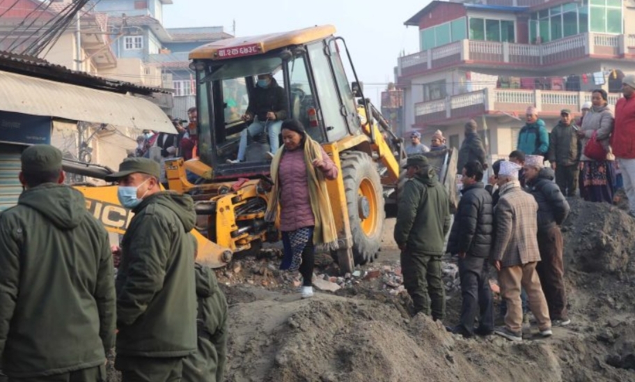 टोखामा सार्वजनिक जग्गामा बनाइएका संरचना हटाइँदै