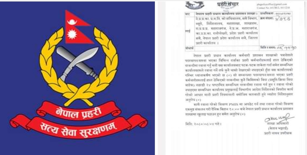 प्रहरी प्रधान कार्यालयको चेतावनी –सरुवा भएका ठाउँमा नजाने कर्मचारीहरुलाई कारबाही गर्छौं