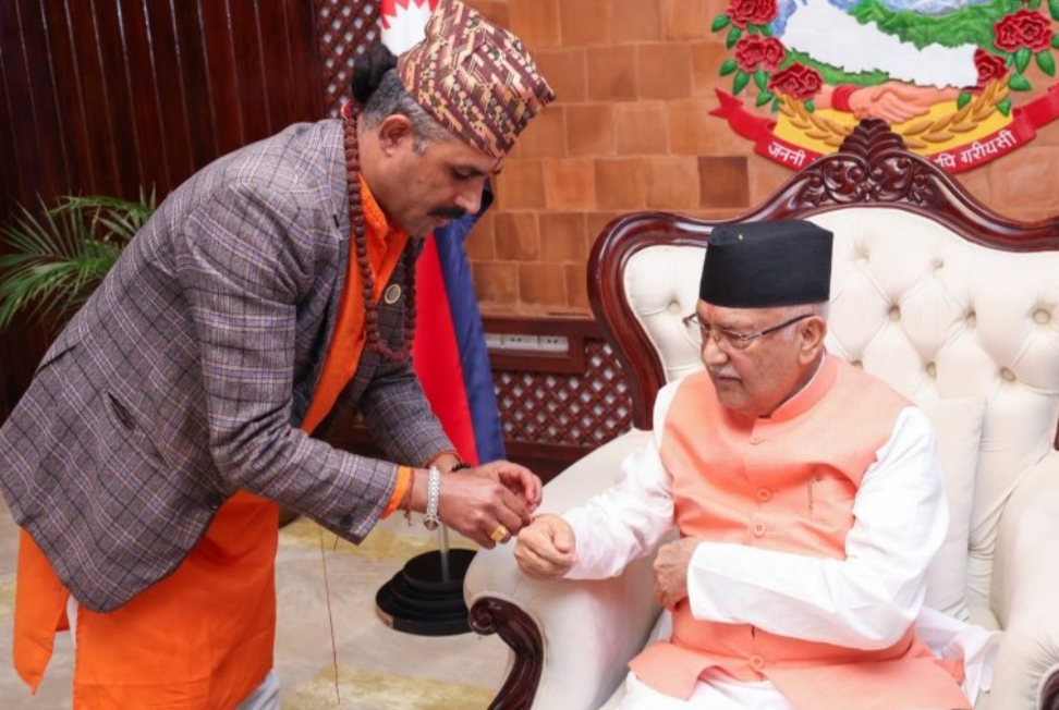 प्रधानमन्त्री ओलीद्वारा जनैपूर्णिमाको शुभकामनासहित रक्षाबन्धन ग्रहण
